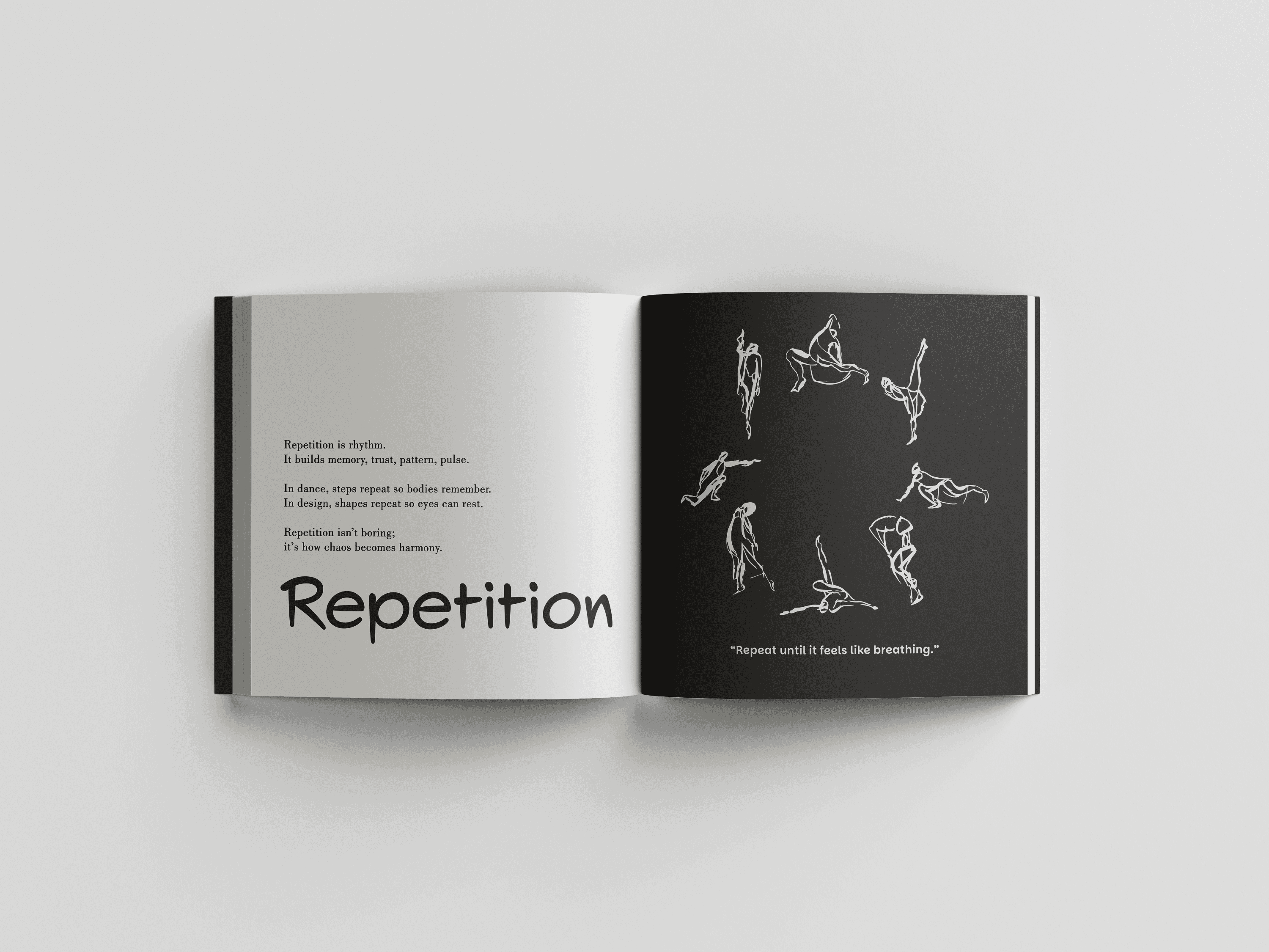 This missing piece connects dance and design through shared principles; balance, contrast, repetition, and flow. It’s a personal interpretation of how movement shapes my creative process, turning discipline into expression.